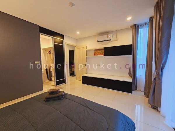 Master bedroom: king-size bed, wardrobe, TV, aircon, balcony, en-suite bathroom with hot shower/tub.