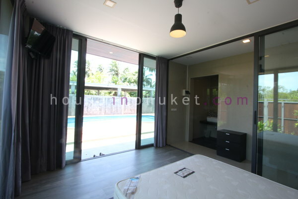 Master bedroom: king-size bed, wardrobe, aircon, en-suite bathroom with hot shower, sliding doors to the pool.