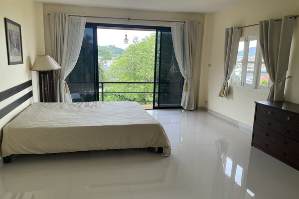 Master bedroom: king-size bed, wardrobe, aircon, en-suite bathroom.