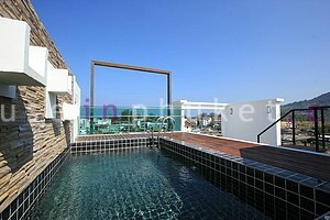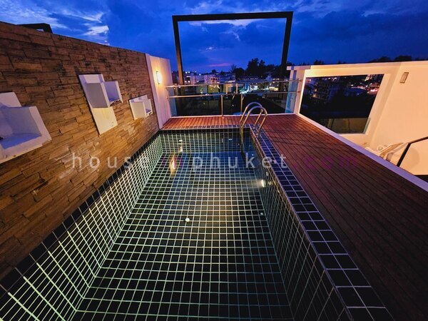 Roof terrace with pool and toilet.