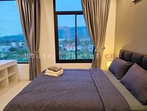 Master bedroom: king-size bed, wardrobe, TV, aircon, balcony, en-suite bathroom with hot shower/tub.