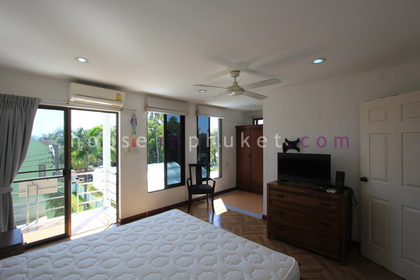 Master bedroom: king-size bed, aircon, en-suite bathroom with hot shower.